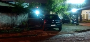 “Carro estacionado em cima da calçada em frente à casa do vereador Olivino Custódio”, numa esquina da av. Guilherme de Paula Xavier”.