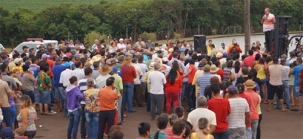 O que é isso, o prefeito de Boa Esperança, Claúdio Gotardo, fazendo um comício? Parece, mas não é. Gotardo está discursando durante a distribuição de peixes, que está se tornando uma tradição no município na Semana Santa. Este ano foram cinco toneladas de peixes. Tudo criado no Lago Municipal. Cada família recebeu dois peixes, numa média de quatro a cinco quilos de carne.