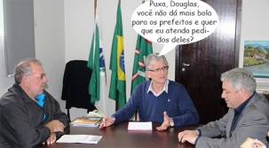 O presidente da Comcam, Cláudio Gotardo (Boa Esperança), levou uma lista de pedidos da região ao secretário de Estado Norberto Ortigara (Agricultura). Tudo com uma mãozinha do secretário Douglas Fabrício (Esporte e Turismo). Entre os pedidos, melhorias em estradas nos municípios de Barbosa Ferraz, Campo Mourão, Engenheiro Beltrão, Farol, Goioerê, Mamborê e Quarto Centenário.