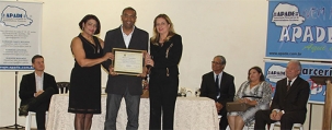 A autora da homenagem, Professora Vilma, entregou a moção ao diretor Valdair da Silva, junto com a prefeita Regina Dubay.