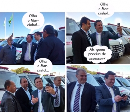 Os cliques são desta terça-feira, em Curitiba, quando foram entregues 80 ambulâncias pelo governo do Estado. O deputado Márcio Nunes acompanhou e fez selfies com os prefeitos de Pérola, Iporã e Alto Piquiri. Na verdade, são vídeos que o próprio parlamentar filma no celular e posta nas redes sociais. Hummmmm...