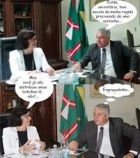 Os cliques são do encontro do secretário de Estado Douglas Fabrício (Esporte e Turismo) com a colega Ana Seres Comin (Educação). O mourãoense foi pedir liberação de recursos para construção de centro esportivo no Colégio Estadual e de reformas no Colégio Agrícola, em Campo Mourão. Também pediu a instalação de 10 aparelhos de ar condicionado no colégio Santo Inácio de Loyola, em Fênix.