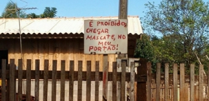 Placa colocada em frente a casa da Vila Guarujá, em Campo Mourão, avisa que morador não quer saber de mascate. Bem claro, não?...