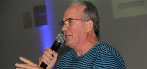 Roberval Rusceto, presidente do Observatório Social de Campo Mourão, durante o lançamento do gibi do Portal da Transparência, que foi preparado pela Acamdoze para ser distribuído nas escolas da região; nesta sexta-feira, em Campo Mourão.