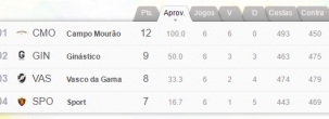 O Ginástico/MG foi a Recife e venceu o Sport/PE duas vezes, assumindo a vice-liderança da Liga Ouro de Basquete. Os jogos encerraram o primeiro turno da competição. Campo Mourão fechou essa etapa com 12 pontos e 100% de aproveitamento. Dias 12 e 14 os mourãoenses iniciam o returno justamente contra o Ginástico, no JK. Depois serão quatro jogos fora, contra Sport/PE (21 e 23) e Vasco/RJ (7 e 9 de maio).