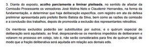 Batista alegou que um o presidente da CP é filho do vice-prefeito e, portanto, teria interesse em sua cassação para beneficiar o pai.