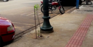 “Rua São Paulo, centro de Campo Mourão. Assim que se faz (proteção total de árvore, e ela resiste). Só não tem por aonde regar árvore...”