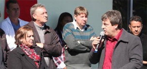 Olha só quem estava pertinho do prefeito Mauro Slongo, nesta sexta-feira, durante a inauguração da ampliação do Centro de Saúde de Luiziana. Ele mesmo: o ex-prefeito Wilson Tureck. Os dois foram adversários na última eleição, num pleito, alás, bem pesadinho, mas isso é coisa do passado. Wilson agora apoia Slongo. Agora quem virou adversário do prefeito é outro ex-prefeito, Claúdio Pol. É, Pol, que apoiou Slongo, deve ser adversário dele na eleição de outubro. Ah, essa política...