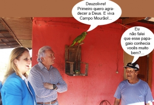 O clic é do jardim Maria Barleta, durante uma visitinha da prefeita Regina Dubay e do ex-prefeito Nelson Tureck. Eles passaram pela casa do presidente da Associação de Moradores, João Domingues Soares e se depararam com um papagaio.