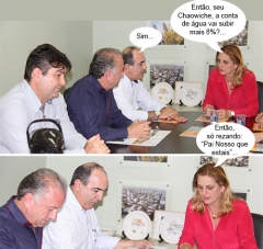 Os cliques são desta quinta-feira, quando o presidente da Sanepar, Munir Chaowiche, esteve com a prefeita Regina Dubay. O gerente regional Edson Lima acompanhou a visita. Chaowiche falou em investimentos de R$ 24,1 milhões para os próximos anos. Ele não foi embora de mãos abanando, não. Ganhou da prefeita o kit da Festa do Carneiro no Buraco.