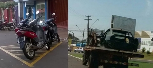 8) Apesar de vagas para motocicletas terem sido demarcadas, ainda tem muita moto usando áreas irregulares para estacionar, como essas aí, na rua Harrison José Borges.