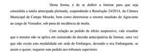 Boca Santa não mata a cobra e mostra a bicha morta? Então, olha aí o trecho da decisão do Tribunal de Justiça do Paraná que determina o “retorno imediato” do vereador Pedrinho Nespolo, “sob pena de incidência de multa”. Ele teve o mandato cassado pela Câmara em outubro. O texto do juiz Edison Macedo Filho também frisa no parágrafo seguinte que não se aplica no caso “efeito suspensivo”.