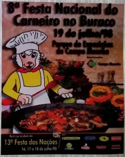 ...para o prato típico de Campo Mourão ser servido na 25ª Festa Nacional do Carneiro no Buraco. O cartaz ao lado é da oitava edição do evento, em 1998. Foi a segunda festa sob o comando do prefeito Tauillo Tezelli. Mais uma fez, foi preciso atrasar uma semana para não coincidir com a final da Copa do Mundo. O Brasil, de novo, chegou à decisão, mas desta vez perdeu para a França (3 a 0).