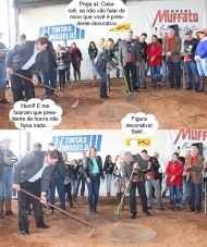 Os cliques são deste domingo, na hora da retirada simbólica do "buraco número um" na Festa Nacional do Carneiro no Buraco. Devido à chuva, o ritual foi improvisado no Pavilhão dos Buracos, sem muito glamour. A prefeita Regina Dubay, o presidente de honra Névio Hanel e o presidente da festa, Nelson Casarolli, pegaram na enxada e na vassoura. Ah, pensa que é só comer, é?...