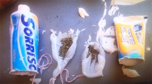 Agente da cadeia de Goioerê encontrou maconha dentro de um tubo de pasta de dentes que seria entregue a um preso. A droga estava dentro de dois pacotinhos de plástico amarrados com linha de costura. A mulher que levou o tubo foi autuada por tráfico de drogas. A maconha era para o marido dela. Ela disse que pegou o tubo na casa da sogra. Em tempo: isso não é recomendado pelos dentistas...