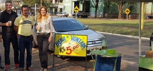 ...Tomar garapa em promoção na rua e ainda fazer pose para foto. (Regina Dubay)