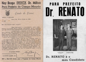 1972 – O advogado Renato Fernandes Silva usou em sua campanha para prefeito de Campo Mourão um cartaz em que aparecia o lado do governador Parigot de Souza. “Dr Renato é o meu candidato”, frisava o texto.