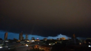 Vista de Campo Mourão, às 18h30 desta quarta-feira. Segundo o site Climatempo, não vai parar de chover tão cedo. A previsão é de 60 milímetros na quinta e 60 na sexta. A partir de sábado diminui, mas segue chovendo entre 5 e 12 milímetros por dia até quarta-feira. A temperatura só esquenta e chega a 34 graus na terça-feira.