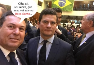 O juiz federal Sérgio Moro, famosérrimo pela Operação Lava-Jato, esteve nesta segunda-feira na Assembleia Legislativa. Foi falar das 10 medidas para o combate à corrupção. Aí, claro, todo mudo quis fazer uma fotinha ao lado dele. O deputado mourãoense Márcio Nunes não perdeu tempo e caprichou na selfie. Hummmmm...