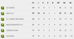 O Sport folgou, mas teve rodada nesta quarta-feira pela Terceirona do Campeonato Paranaense. Com o Independente perdeu para o Junior Tem (1 a 0), o Leão do Vale manteve a terceira posição, com 22 pontos. Só que o Iraty fez 4 a 1 no Arapongas e abriu oito pontos e vantagem sobre os mourãoenses.