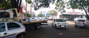 Até a Polícia Militar passa apurada com o estacionamento diagonal adotado há mais de 10 anos nas ruas centrais de Campo Mourão. Nesta quinta-feira pela manhã, o caminhão-plataforma da PM parou numa dessas vagas, na rua São José, e a traseira dele fico no meio da rua, travando o trânsito no local (quando vinha carros nos dois sentidos um era obrigado a parar e esperar o outro passar).