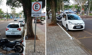 “Carro estaciona em área reservada para motocicletas. Foi neste domingo à tarde, no calçadão, centro de Campo Mourão”.