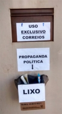 “Cansados de esvaziar todos os dias nossa caixa de Correio, de lixo eleitoral, resolvemos dar a dica do destino que damos aos santinhos. Obs: residência no centro de Campo Mourão”.