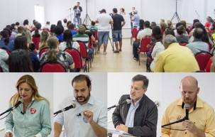 Os quatro candidatos a prefeito de Campo Mourão estiveram neste sábado no Sindicato dos Servidores Municipais. Foram falar de suas propostas para a categoria e dar uma resposta às reivindicações do Sindiscam, com 37 itens. Cada prefeitável pode falar por 20 minutos.