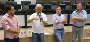 O deputado Rubens Bueno voltou a Câmara de Campo Mourão nesta quarta-feira. Desta vez foi para entregar emenda parlamentar da bancada do Paraná. São R$ 1,3 milhão para 11 municípios da região. Emenda de bancada tem caráter impositivo. Os recursos serão repassados para micro-ônibus e equipamentos para postos de saúde. Os prefeitos João Cláudio Romero (Quinta do Sol), Ricardo Radomski (Mamborê) e Tauillo Tezelli (Campo Mourão) participaram. .