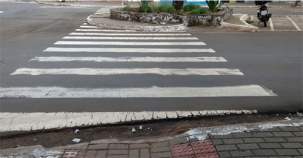 Av. Capitão Índio Bandeira, esquina com a rua São Paulo. Responda rápido: como um cadeirante ou um deficiente visual atravessaria essa faixa de segurança com um canteiro central atravessado no meio do caminho?