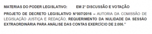 Motivo? A votação de um projeto para anular a sessão que em 2011 que rejeitou as contas de 2006 do prefeito Reinaldo Krachinski.