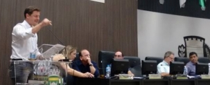Pedrinho Nespolo (PSB), vereador, em discurso durante a sessão da Câmara de Campo Mourão, nesta segunda-feira à noite.