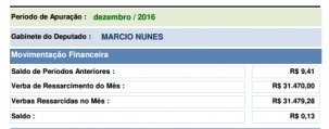 O gabinete do deputado estadual Márcio Nunes (PSC) encerrou o ano com sobras de 13 centavos.