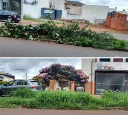 Av. Goioerê, área central de Campo Mourão. Numa quadra o mato toma conta do canteiro central aponto de já ter matinho “brotando” no asfalto. Na quadra seguinte alguém se achou no direito de jogar galhadas e restos de jardinagem sobre o canteiro. Ê Camorão!...