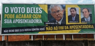 Os outros dois são Fernando Giacobo (deputado da ex-prefeita Regina Dubay) e Fernando Francischini. “Não deixe que eles votem contra você”, frisa a campanha. O outdoor pede que seja curtido no Facebook a página “Todos contra o fim da aposentadoria”.