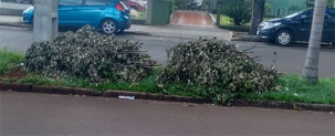 Restos de podas de árvores “aparecem” no canteiro central da av. José Custódio de Oliveira, no centro de Campo Mourão.
