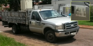 “Caminhão da prefeitura de Reserva, na região de Ponta Grossa, carrega mudança em Campo Mourão”.