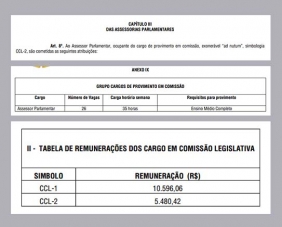Saiu nesta terça-feira à noite a edição extra do “Órgão Oficial” com a publicação da lei que institui o Plano de Carreira da Câmara. É nessa lei que entrou a polêmica emenda que, na prática, deu aumento de 63% para parte dos assessores. A sanção do prefeito Tauillo Tezelli faz parte do acordo com a Câmara. A lei está em vigor, mas os vereadores vão propor novo projeto para retirar essa parte do aumento. Olha lá, hein?...