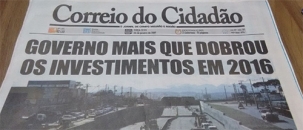 A imprensa de Campo Mourão deu destaque à notícia de que o governo do Estado dobrou o volume de investimentos em 2016 em relação a 2015. Foi manchete no Correio do Cidadão e chamada na primeira página da Tribuna do Interior. Segundo o governo, o aumento foi de 104%, saltando de R$ 2,83 bilhões para R$ 5,79 bilhões.