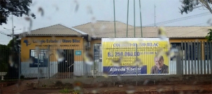 Uma propaganda do deputado federal Alfredo Kaifer foi colocada em frente ao colégio estadual Olavo Bilac, em Peabiru.