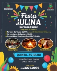 A prefeitura de Barbosa Ferraz vai fazer uma Festa Julina para marcar o anivesário da cidade, no próximo dia 25.
