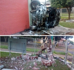 Aconteceu por volta das 4h30 deste sábado. O motorista da GM Captiva perdeu o controle do carro na rotatória em frente ao Cemitério Municipal de Campo Mourão e só foi parar depois de bater na parede da 8ª Ciretran. Pelo muro da frente passou direto. O impacto foi tão forte que a parece do prédio ficou com rachaduras. O condutor, de 33 anos, teve ferimentos graves.