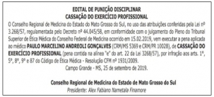 O Conselho Regional de Medicina do Mato Grosso do Sul cassou o registro do médico Paulo Gonçalves.