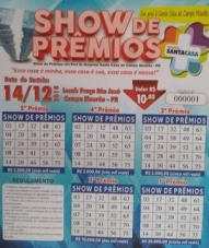 Já comprou a cartela do Show de Prêmios da Santa Casa de Campo Mourão? Ainda não? Então veja aí os pontos de vendas. A cartela custa R$ 10 e vai sortear R$ 50 mil em dinheiro. Só no primeiro prêmio são R$ 30 mil. A renda é para ajudar o hospital a pagar o 13.o salário.