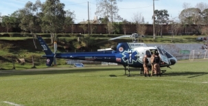 O helicóptero era do Samu e foi buscar vítima de acidente de trânsito.