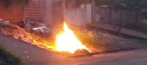Na rua Santa Cruz, próximo à perimetral Tancredo Neves, colocaram fogo em plena calçada.
