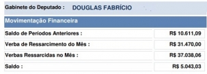O gabinete do deputado estadual Douglas Fabrício teve despesas de R$ 37 mil em junho.