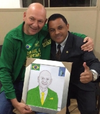 O mega-empresário Luciano Hang chegou nesta sexta-feira à noite a Campo Mourão para a inauguração da filial número 130 da Havan, Adivinha quem estava no aeroporto para a recepção? Sim, o "recepcionista oficial" Magnum Alves. Como sempre, com direito ao tradicional desenho de presente. A loja será inaugurada neste sábado (10h).