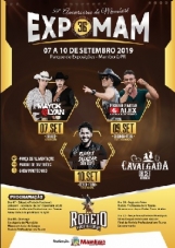 O prefeito Ricardo Radomski (Mamborê) divulgou neste sábado a programação da Expomam. A exposição será realizada de 7 a 10 de setembro para comemorar os 59 anos do município. Inclui shows e rodeio com entrada franca. No dia 9, véspera do feriado de aniversário da cidade, o show é com Pedro Paulo & Alex.