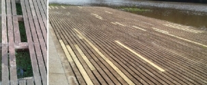 Deck do Parque do Lago, que tinha buraco em que cabia uma criança, foi arrumado pela prefeitura após reclamação de internauta.